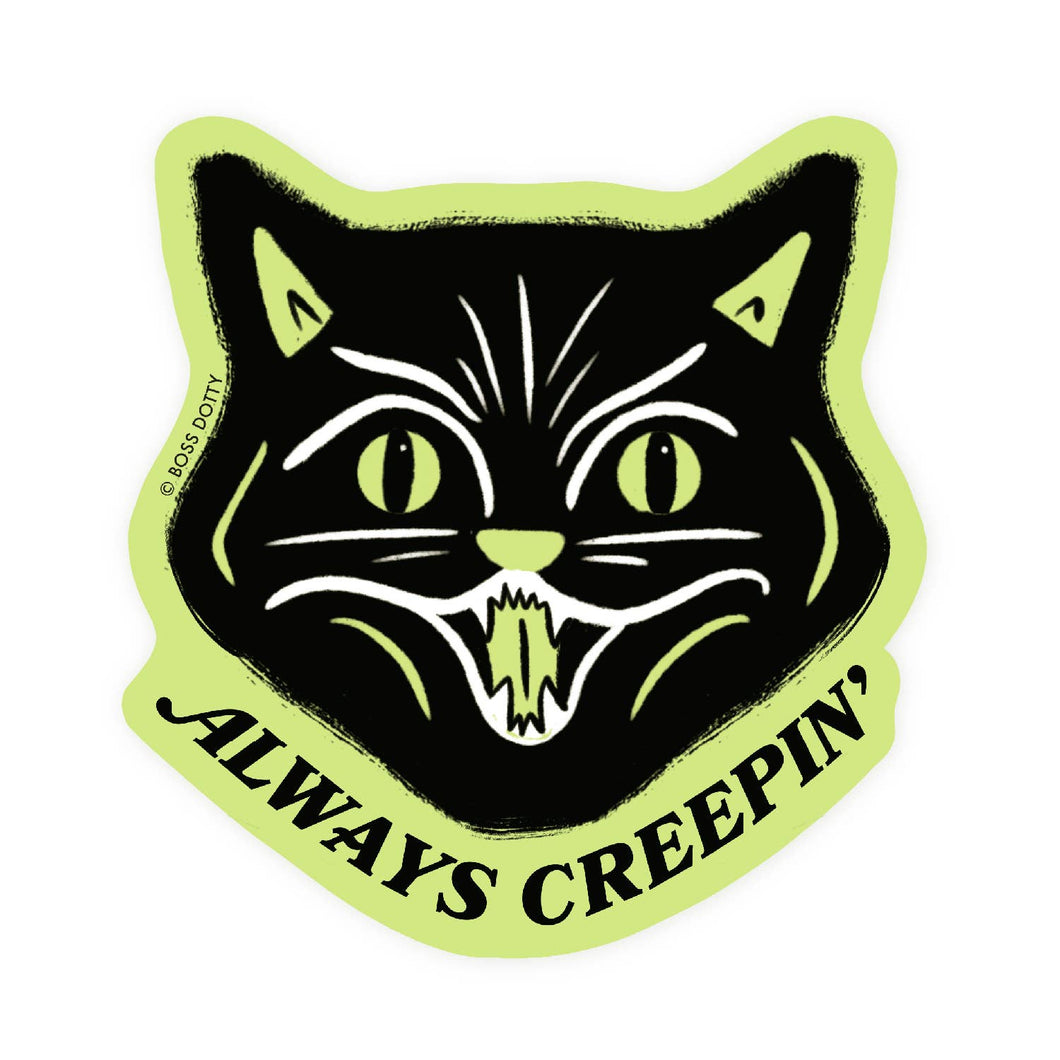 • 3" tall sticker • PVC-free glow-in-the-dark glossy finish • resistant to the sun and water • ships without plastic packaging • perfect for Halloween or year-round black cat lovers!