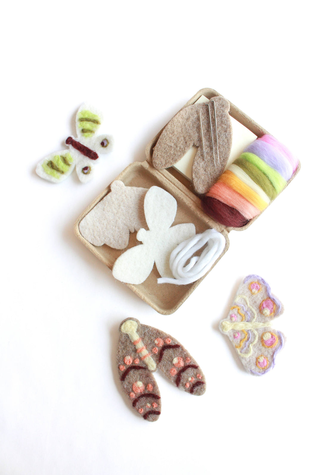 • 1 soy-based foam pad Assorted Wool for needle felting decorations on each moth